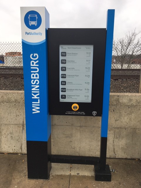 3. Many busway and light rail stations have digital display boards with an audio button that communicate real-time vehicle arrival information. Locations include on the East Busway at Roslyn, Hamnett, Wilkinsburg, Homewood, East Liberty and Negley Stations; on the West Busway at Crafton and Sheraden Stations; and at Lytle, Washington Junction, St. Anne’s, Castle Shannon, Mount Lebanon, Dormont, Potomac, Memorial Hall, South Hills Junction, and Station Square light rail stations.